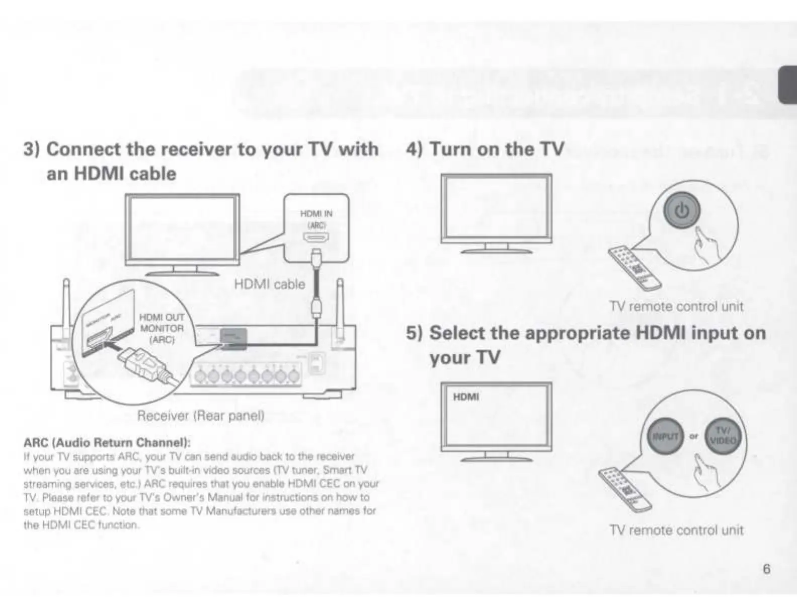 streaming services, etc.) ARC requires that you enable HDMI