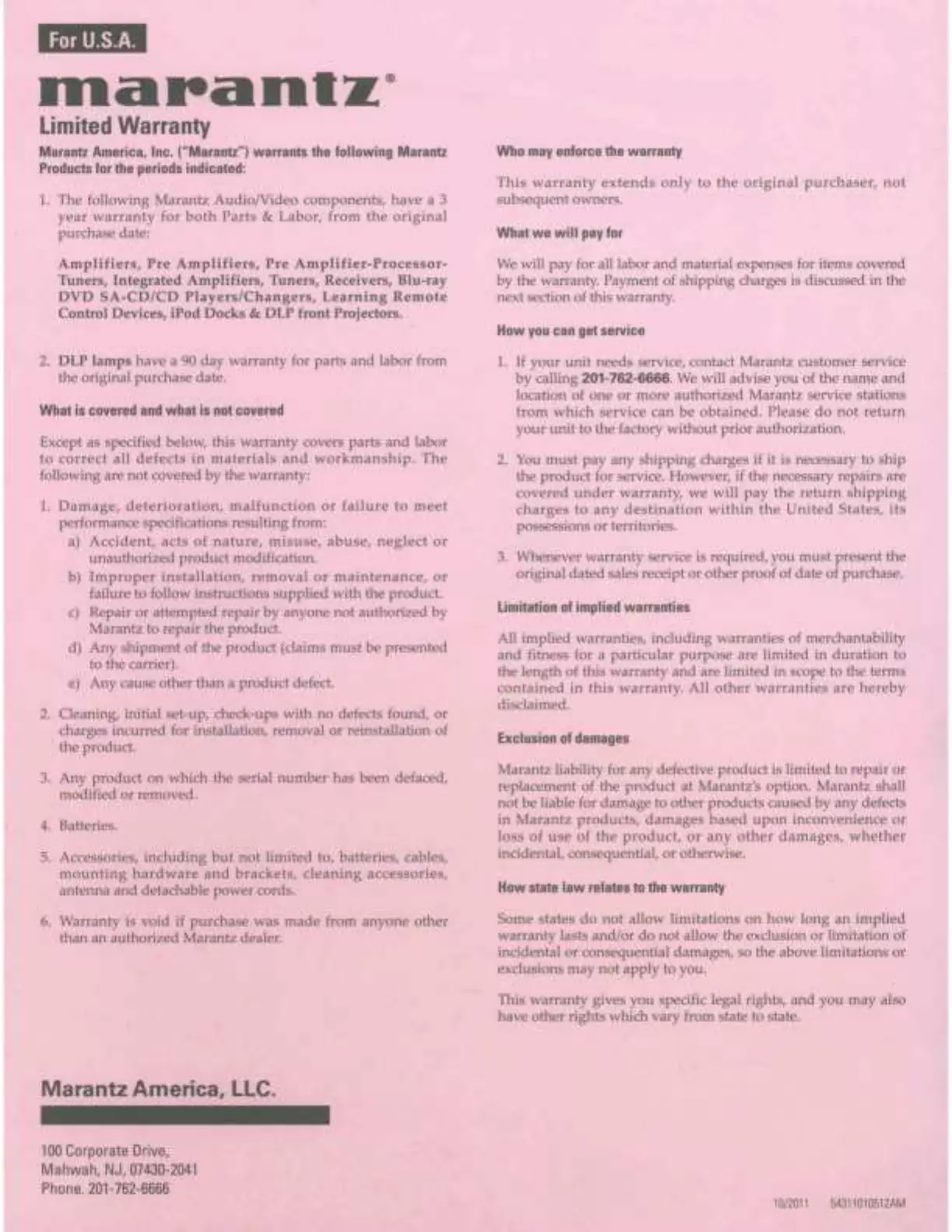 Marantz's option. Marantz shall