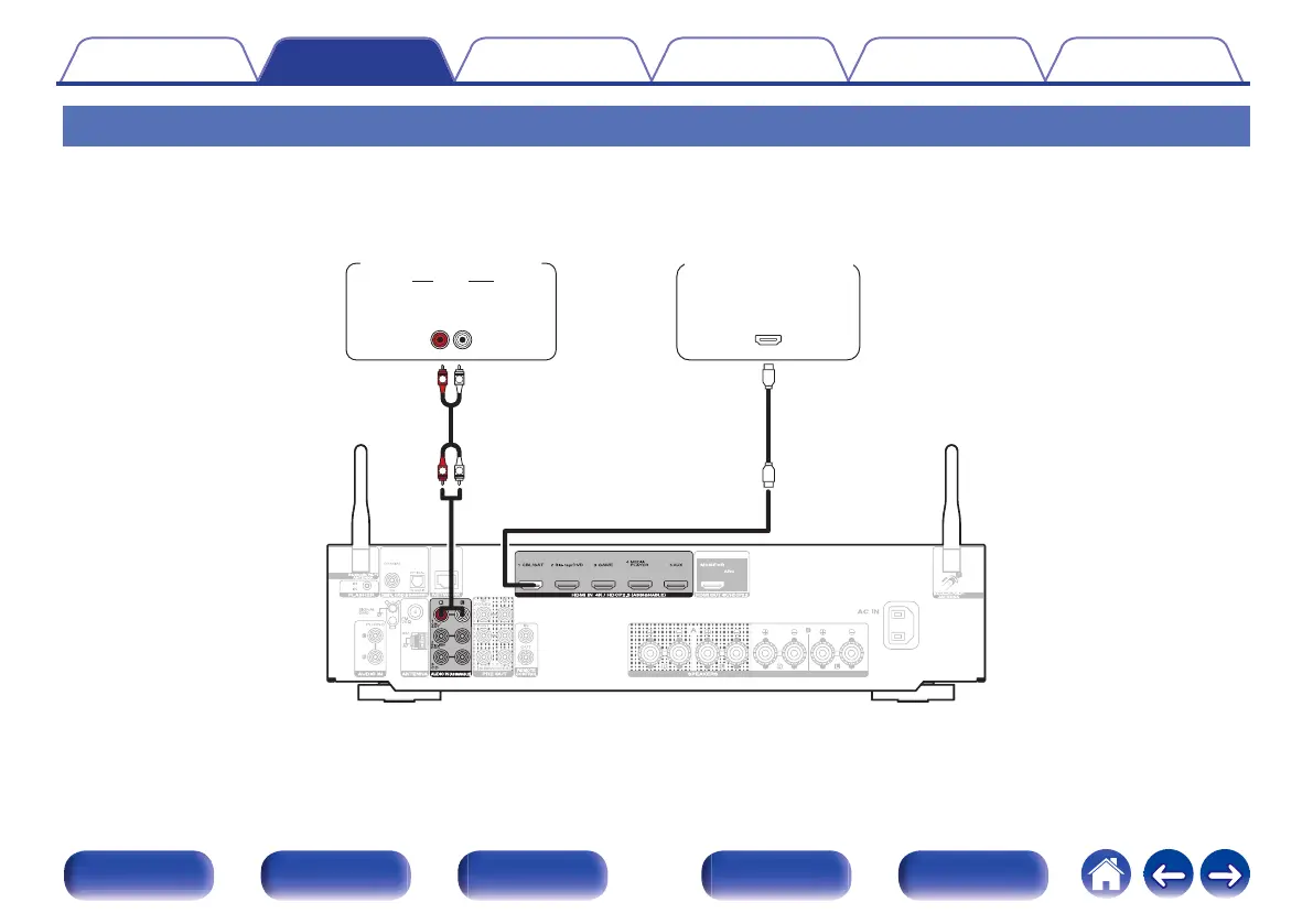This explanation uses the connection with a satellite tuner/cable TV STB as an example.