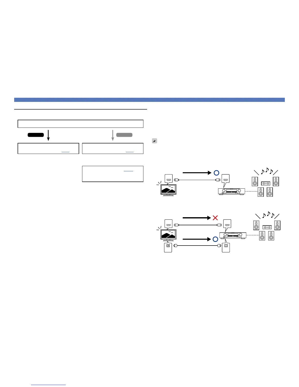 If a TV without the ARC function is connected via HDMI connections, video signals of the playback