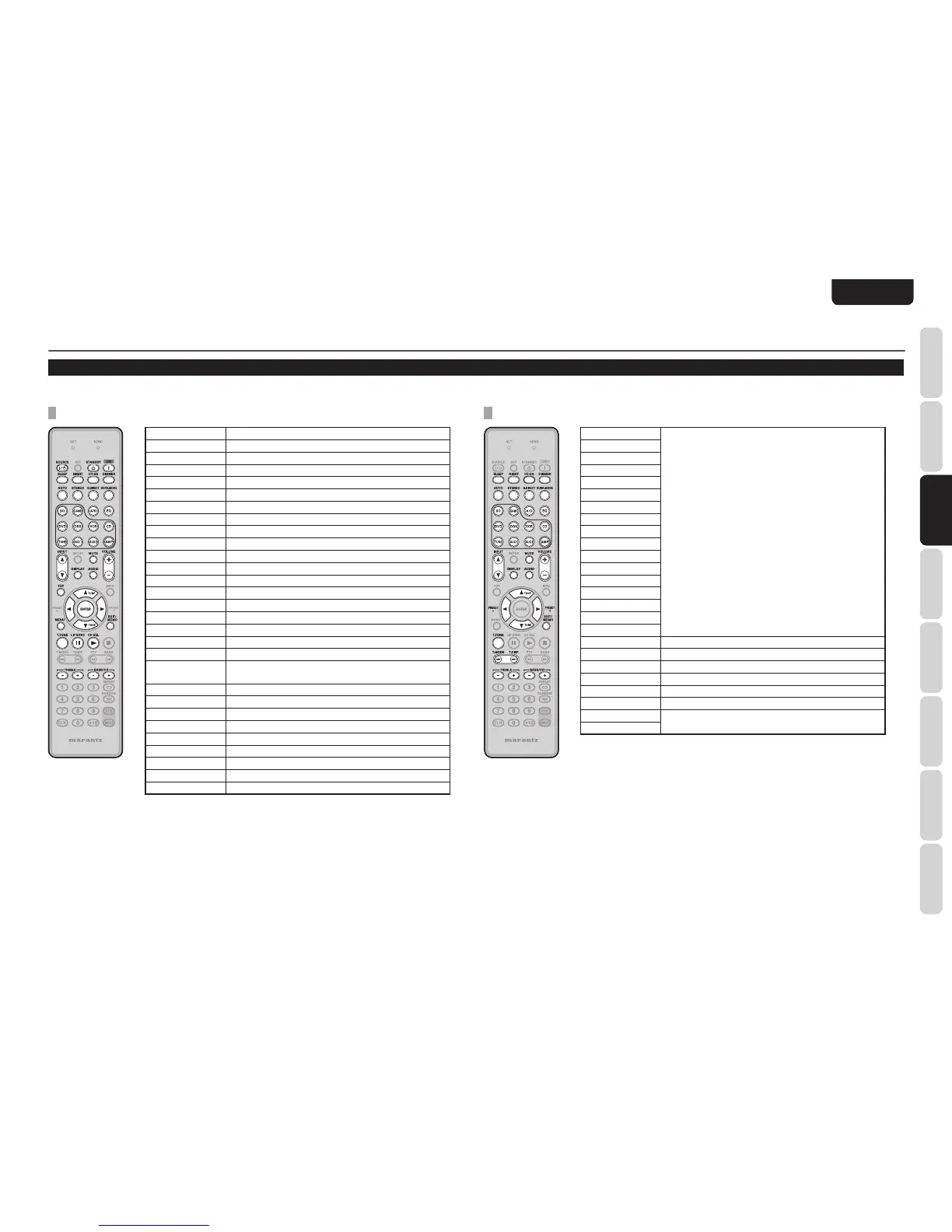 To control the unit by your remote controller, you have to select the device AMP or TUNER by pressing the SOURCE button. Please refer below for the details in AMP and TUNER mode.