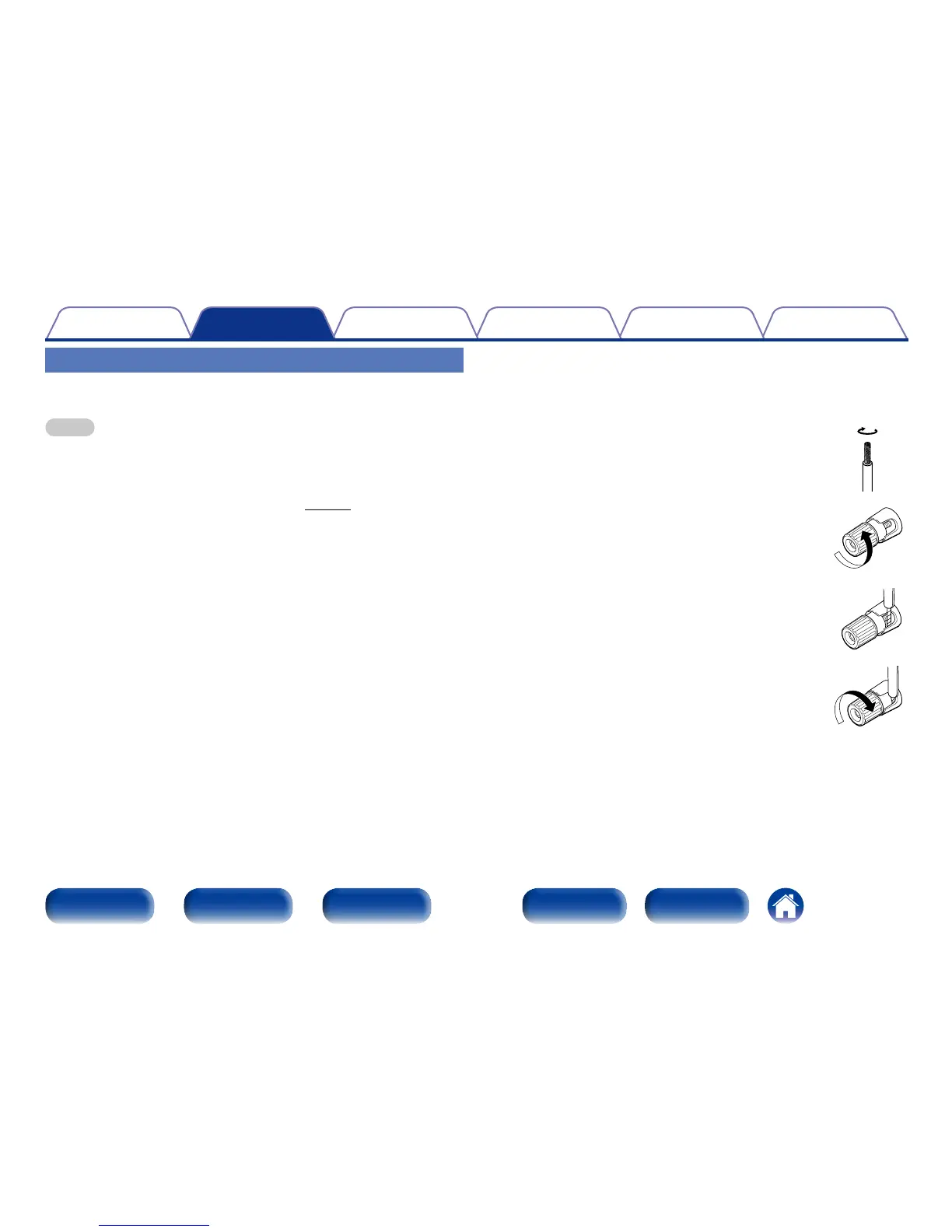 •Connect so that the speaker cable core wires do not protrude from the speaker