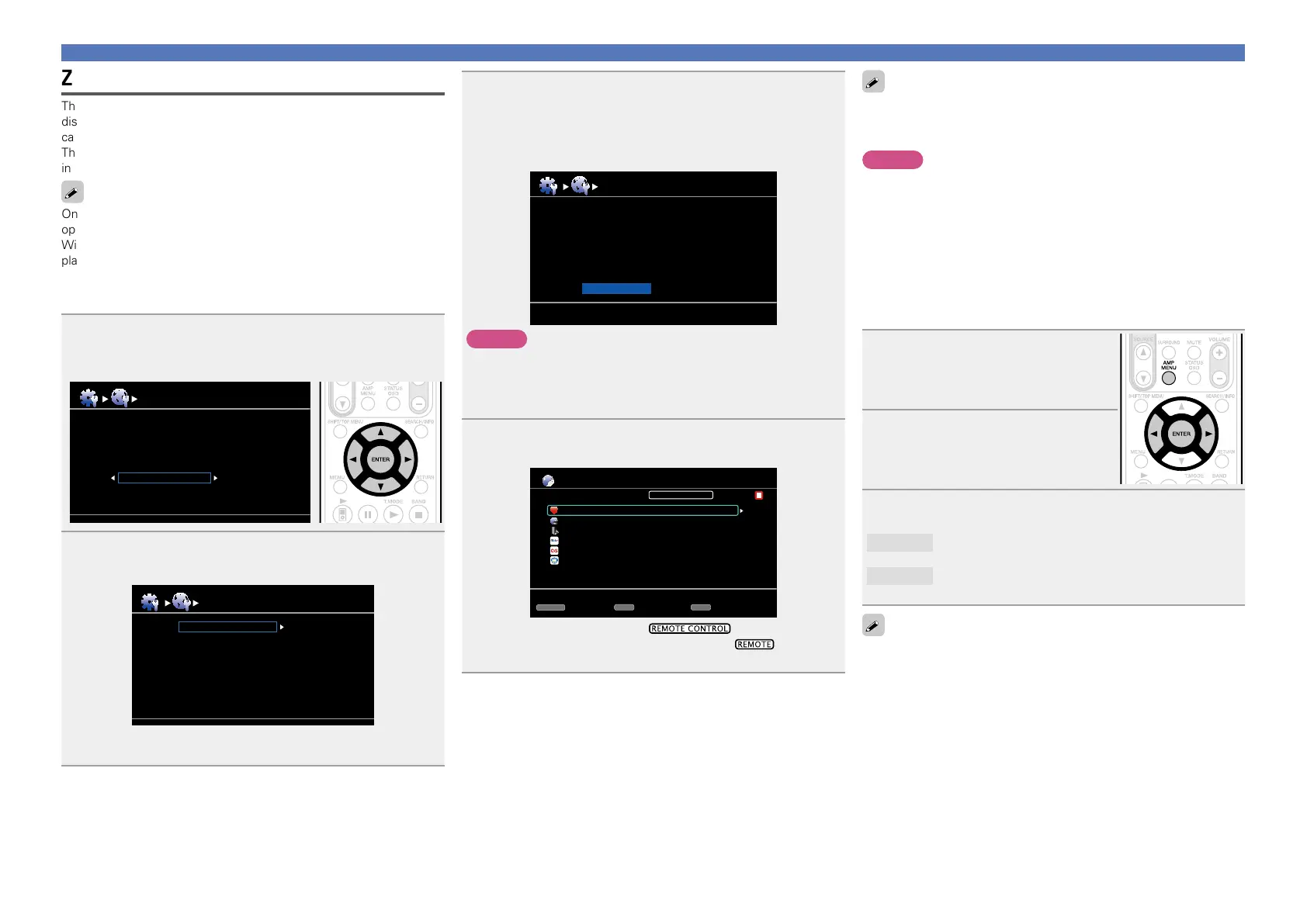 With the Zone Management function, the network menu screen and