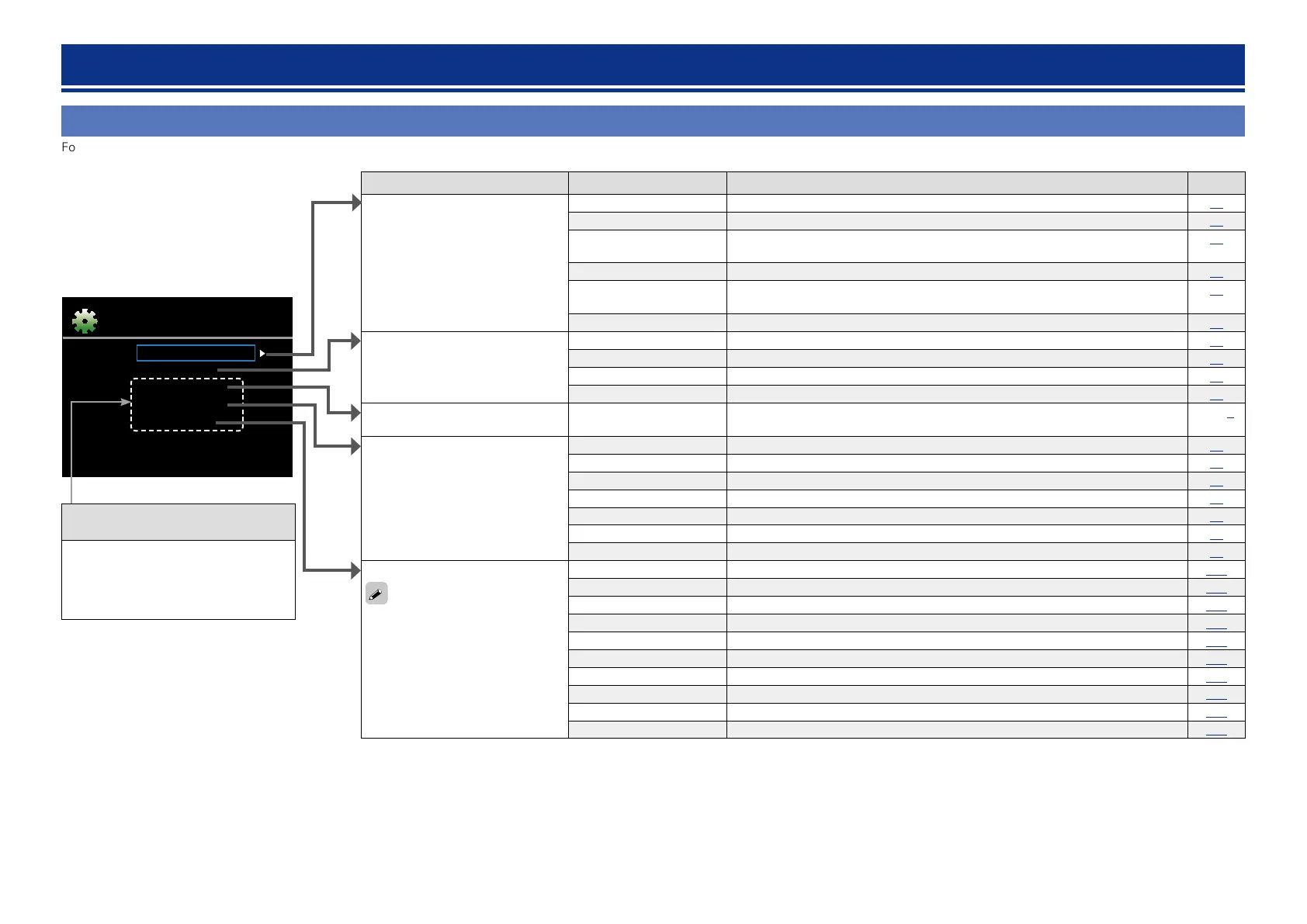 Setting items Detailed items Description Page