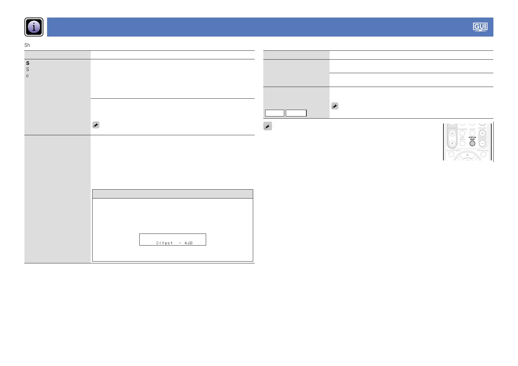 Show information about receiver settings, input signals, etc.