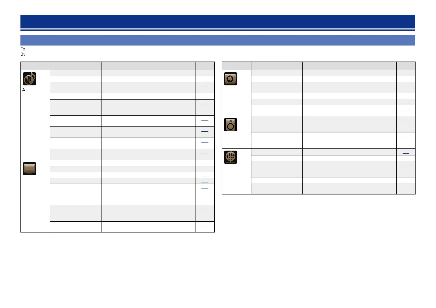 Setting items Detailed items Description Page