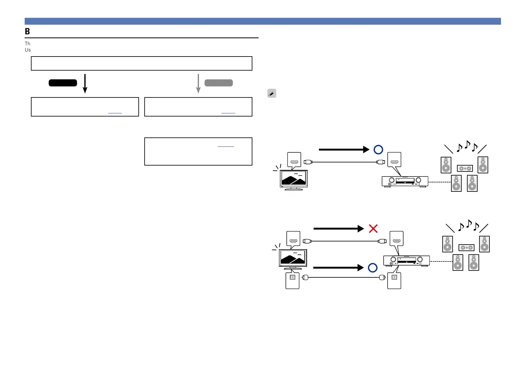 In contrast, if a TV with the ARC function is connected via HDMI connections, no audio cable connection