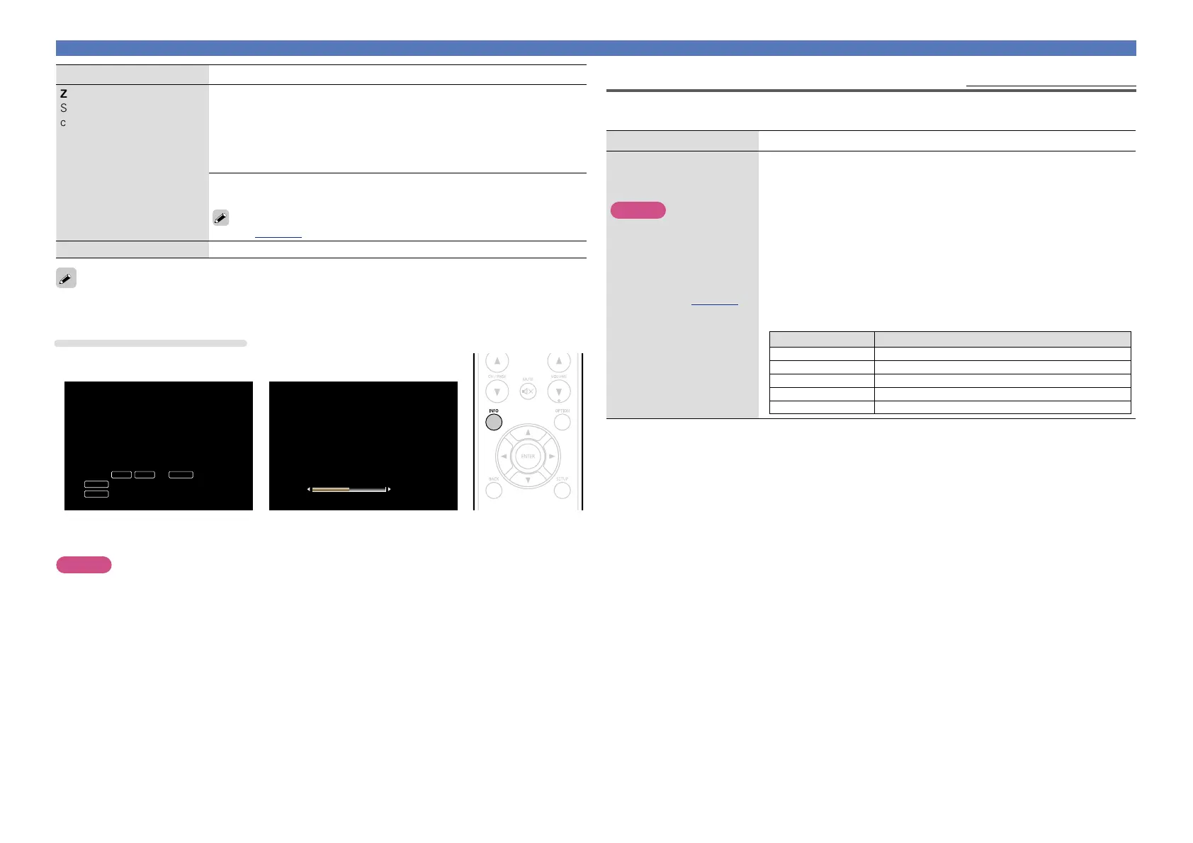 •ZONE Name / Select Source / Name / Sound Mode / Input Mode /