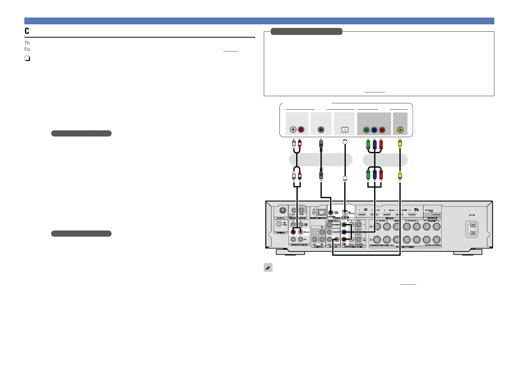 For instructions on HDMI connections, see “Connecting an HDMI-compatible device” (vpage7).