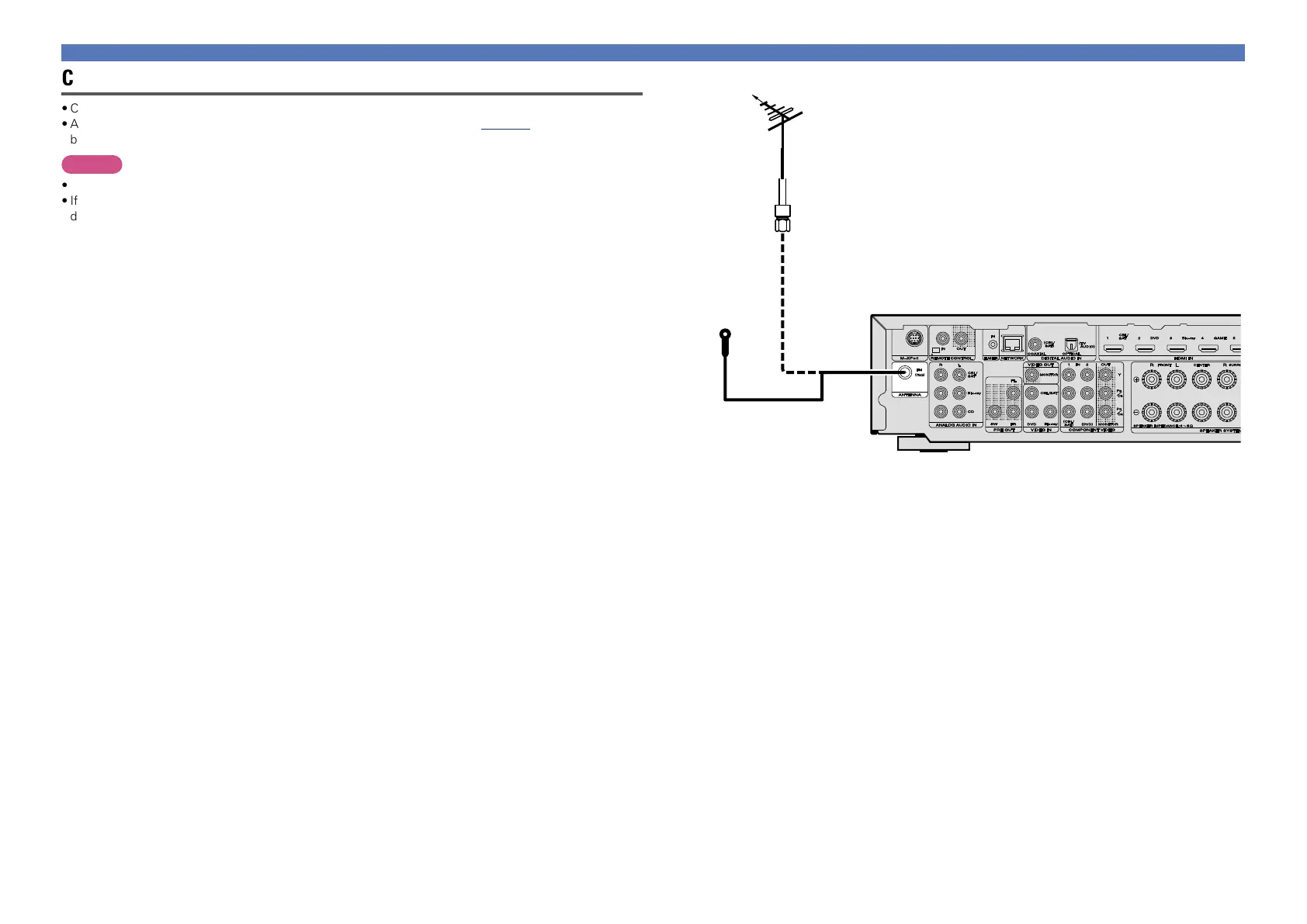 •Connect the FM antenna supplied with the unit to enjoy listening to radio broadcasts.