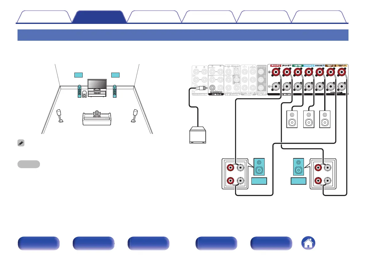 This system plays back 5.1-channels. You can use the bi-amp connection for front speakers. Bi-amp connection is a method to connect separate