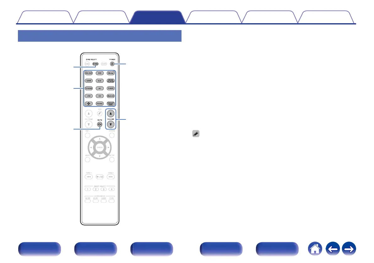 Press ZONE2 to set the operating zone to ZONE2 with