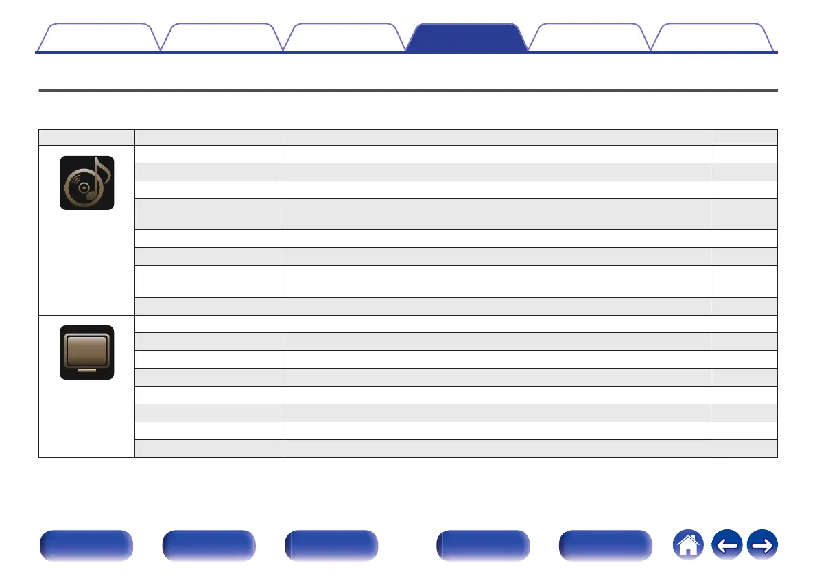 Surround Parameter Adjusts surround sound parameters. 154