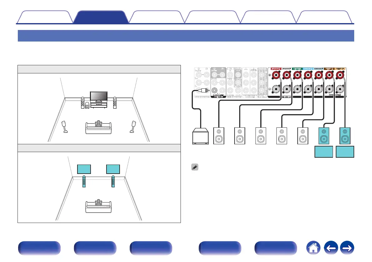 5.1-channel (MAIN ZONE) + 2-channel (ZONE2) speaker connection