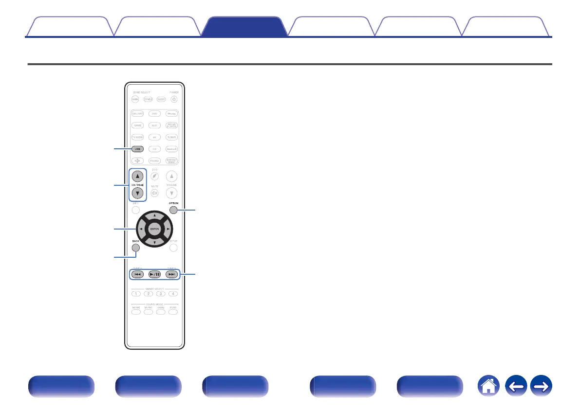 Playing back music files stored on a USB memory device.