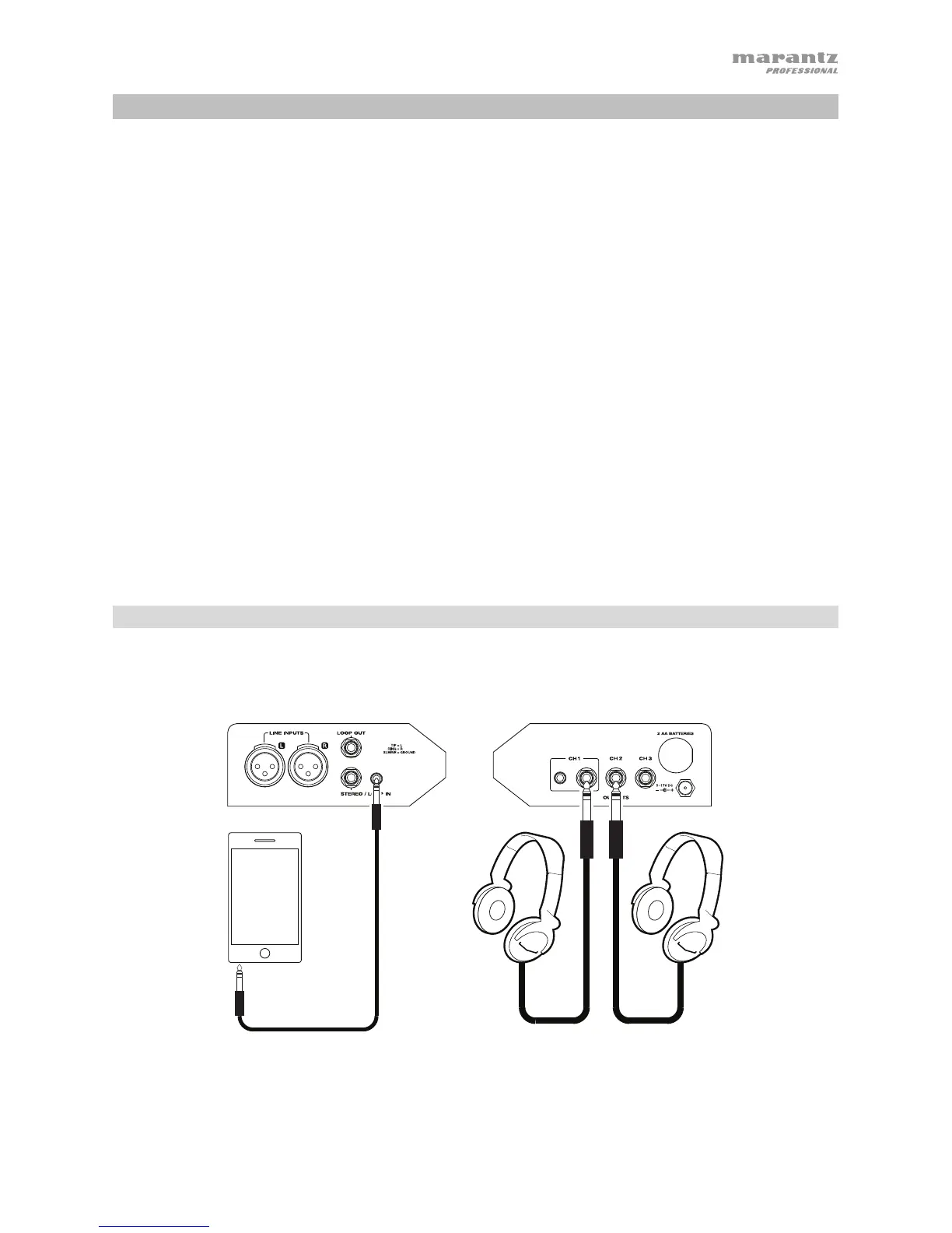 3. Collegare cuffie stereo da 6,35 mm (1/4”) alle uscite. Il canale 1 accetta anche cuffie stereo