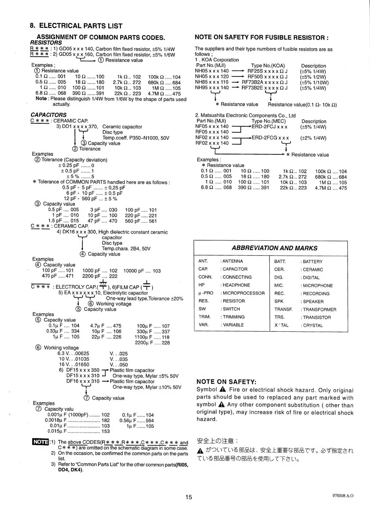 Marantz PM-17 - Comprehensive Parts Listing; Resistor and Capacitor Part Codes; Critical Component Safety Guidelines