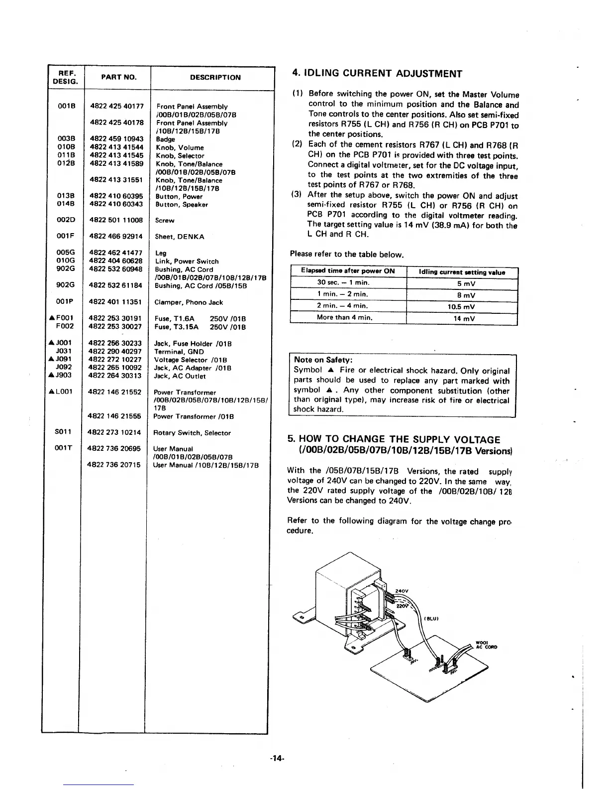 Marantz PM-42 - 4. IDLING CURRENT ADJUSTMENT; Note on Safety; 5. HOW TO CHANGE THE SUPPLY VOLTAGE
