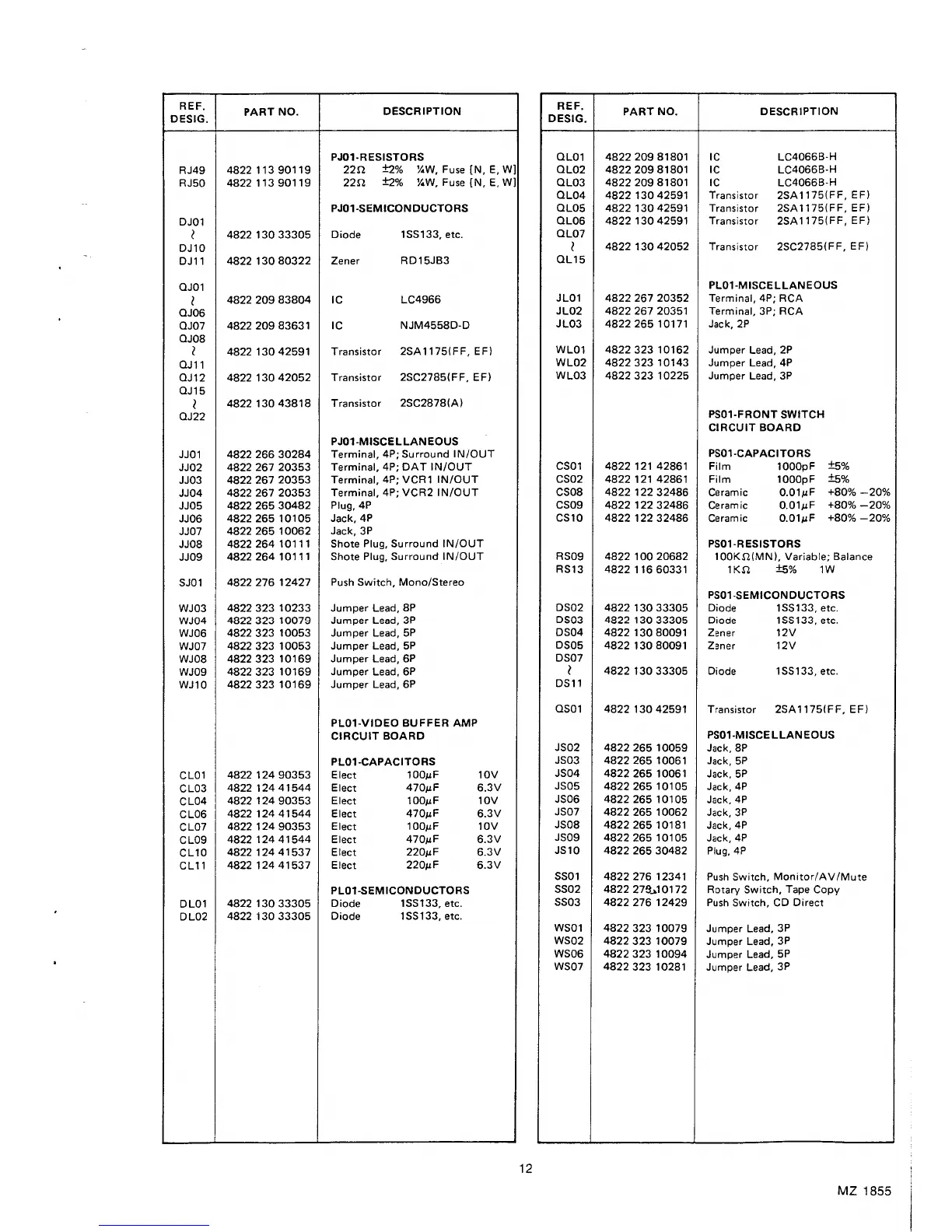 Marantz PM-65AV - Electrical Parts List (Part 2); PJ01, PL01, PS01 Circuit Board Components