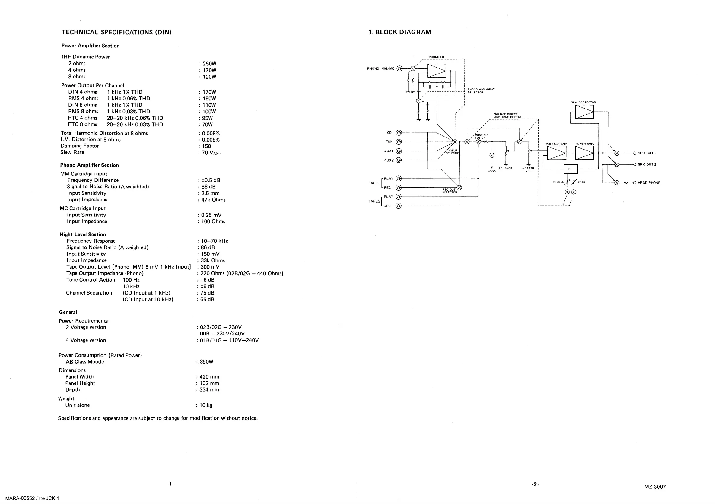 Marantz PM-72 - Technical Specifications; Block Diagram