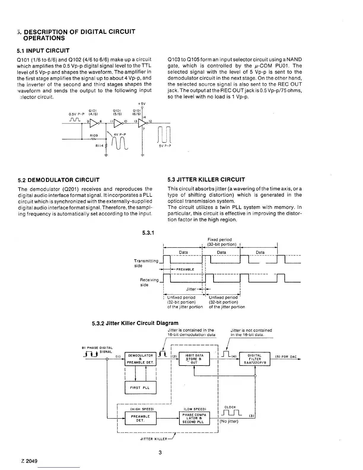 Marantz PM-75 - Description of Digital Circuit Operations; Input Circuit; Demodulator Circuit; Jitter Killer Circuit