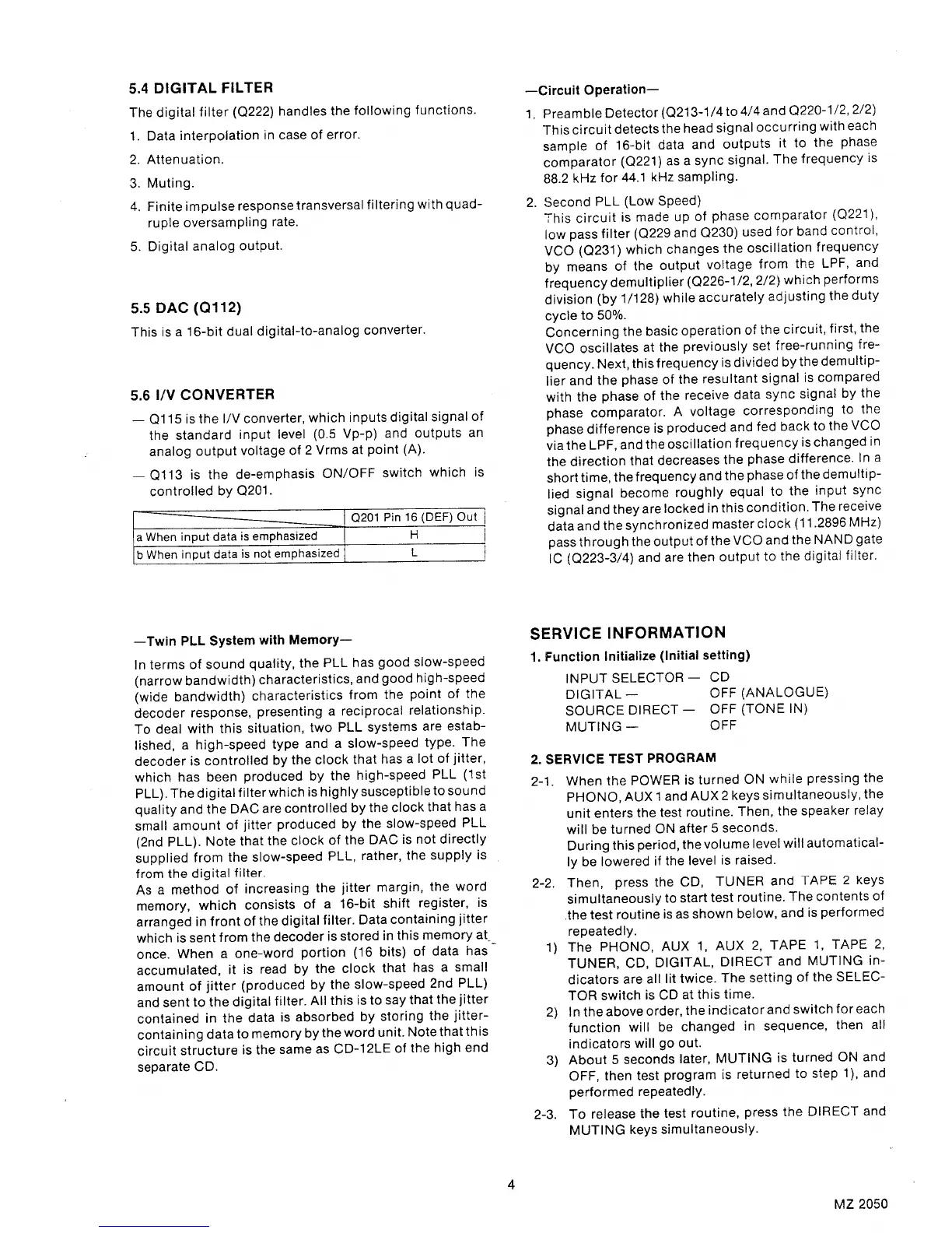 Marantz PM-75 - Digital Filter; Dac (Q112); I;V Converter; Function Initialize (Initial Setting), Service Test Program