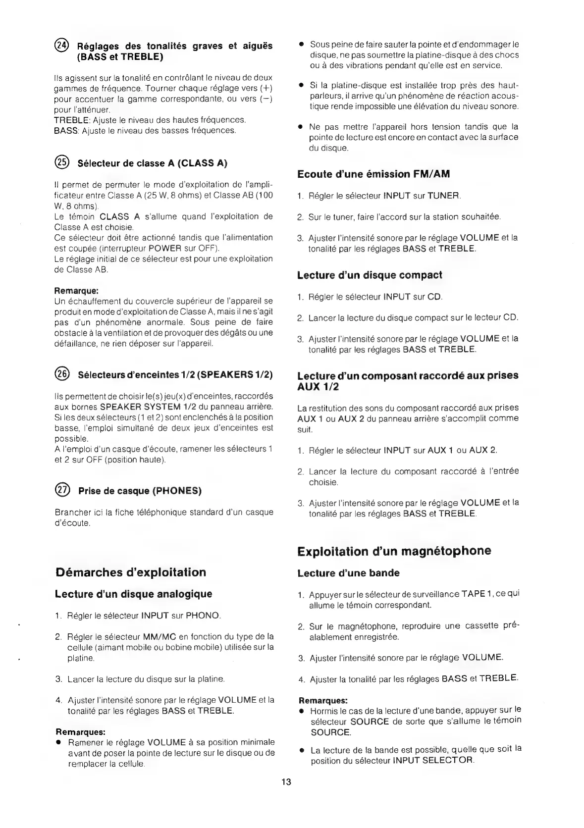 Marantz PM-80 - Ecoute Dune Émission FM;AM; Lecture Dun Composant Raccordé aux Prises aux; Exploitation Dun Magnetophone; Lecture Dun Disque Analogique