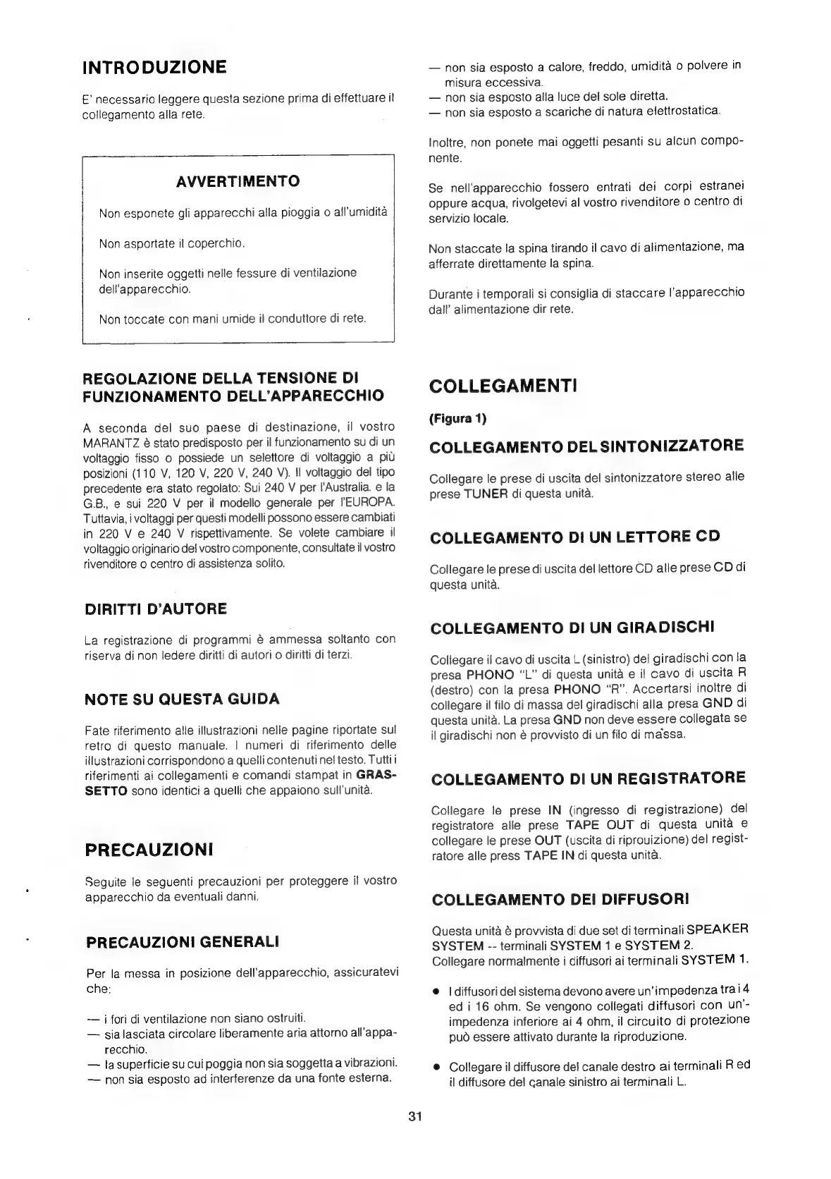 Marantz PM-80 - Collegamento Dei Diffusori; Collegamento del Sintonizzatore; Collegamento Diun Lettore CD; Introduzione