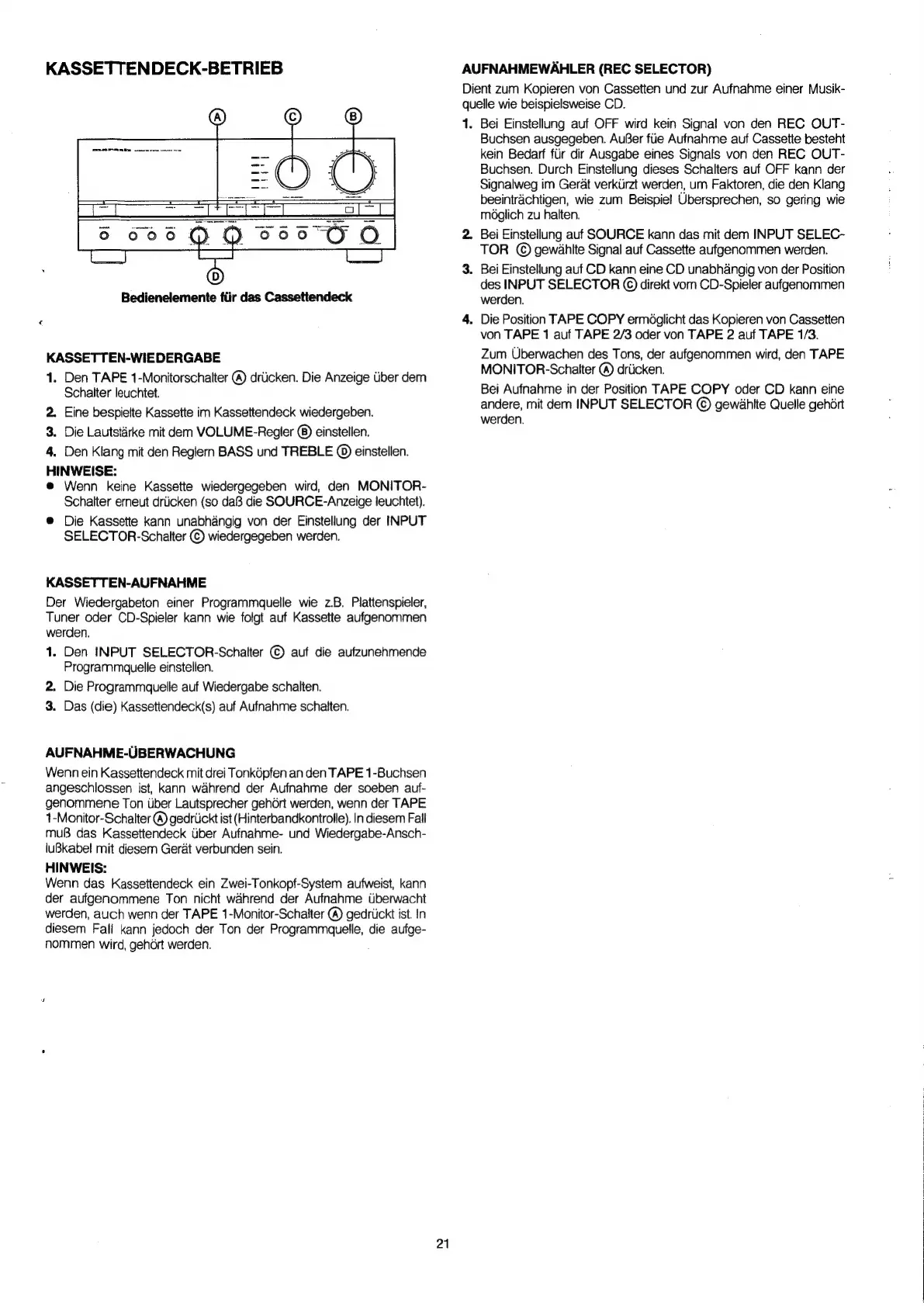 KASSETTENDECK-BETRIEB