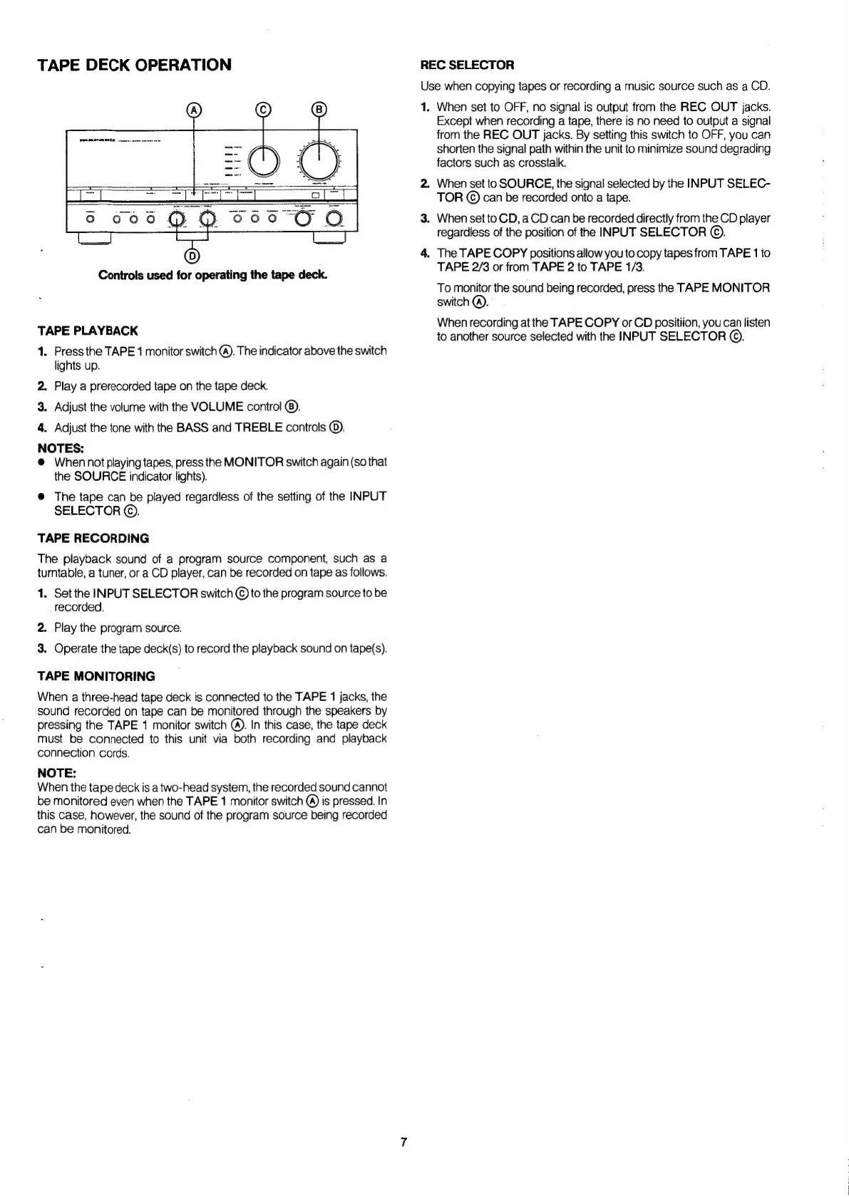 Marantz PM-82 - Tape Deck Operation