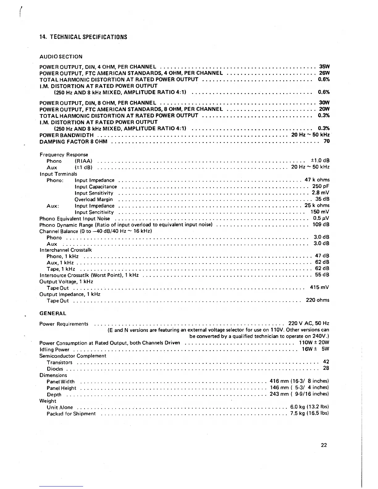 Marantz PM200 - TECHNICAL SPECIFICATIONS; AUDIO SECTION; GENERAL