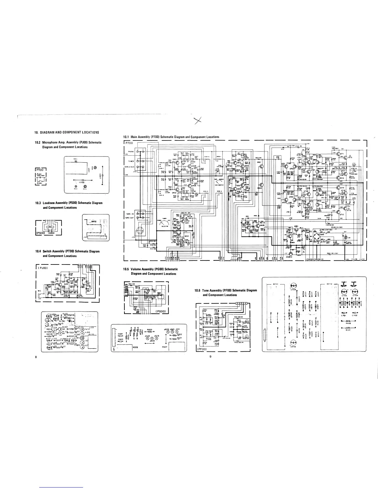Marantz PM200 - DIAGRAM AND COMPONENT LOCATIONS; Main Assembly (P700) Schematic Diagram and Component Locations; Microphone Amp. Assembly (PJOO) Schematic Diagram and Component Locations; Loudness Assembly (PSOO) Schematic Diagram and Component Locations