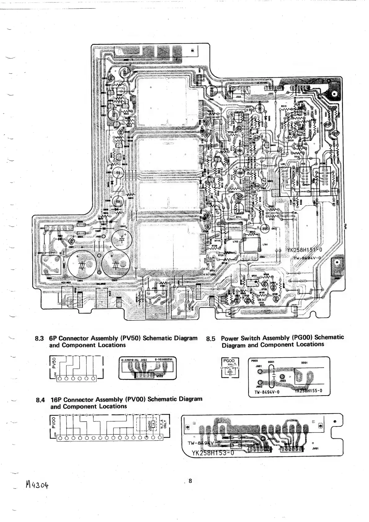 Marantz PM243 - Connector Assembly (PV50) Schematisec Diseagram and Component Locatiseons Ise; Connector Assembly (PV00) Schematic Diagram and Component Locations: Sa Eres Eee; Power Switch Assembly (PGOO) Schematic Diagram and Component Locations. Cei Etie Ad Teases Creas