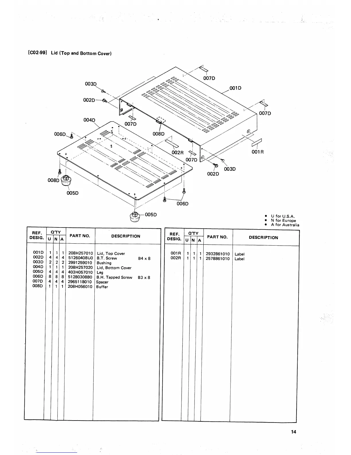 Marantz PM310 - Lid (Top and Bottom Cover) Exploded View and Parts List
