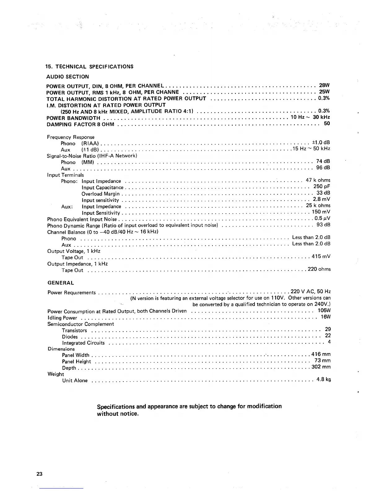 Marantz PM310 - 15. Technical Specifications