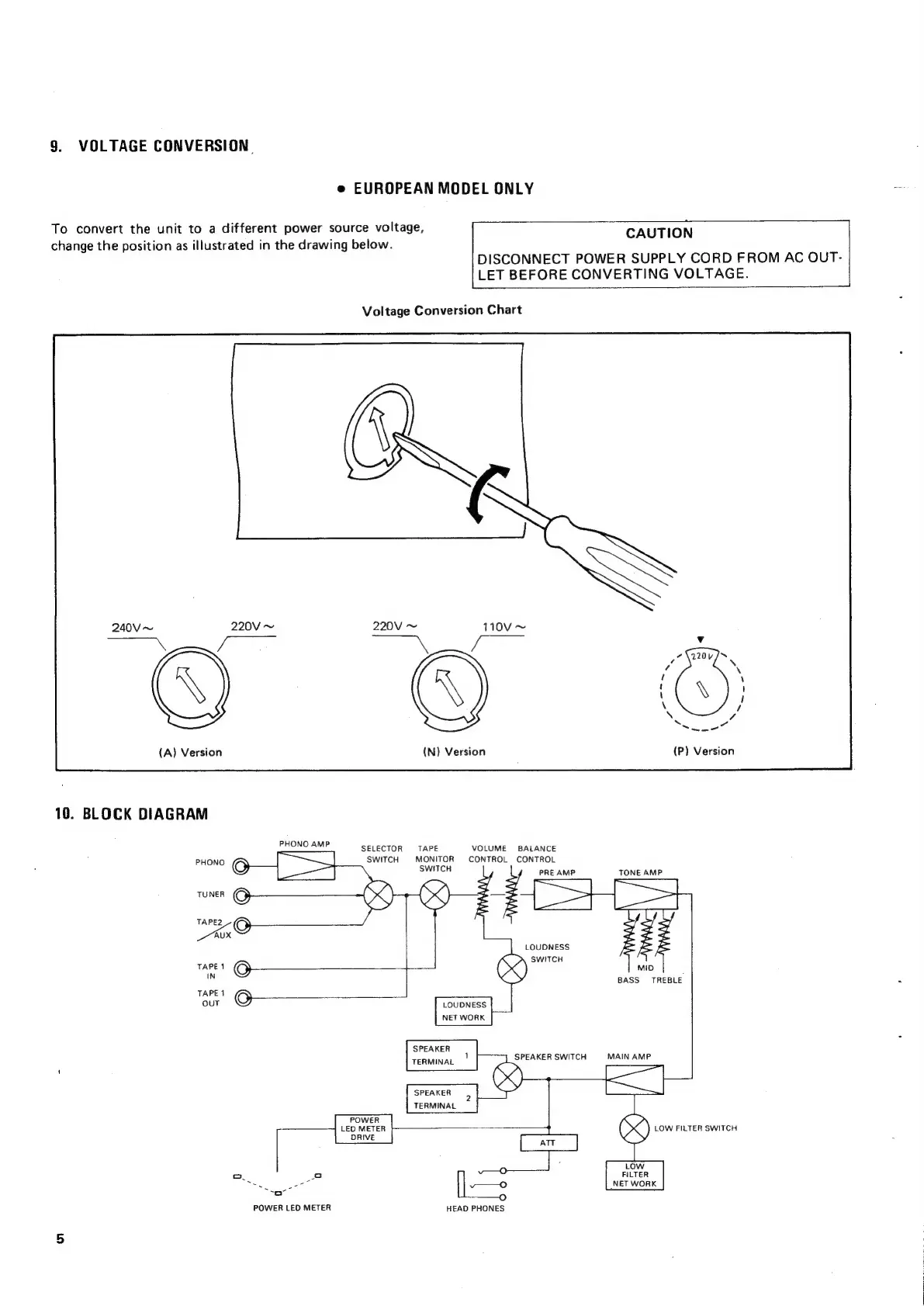 Marantz PM350 - System Configuration and Diagrams; Voltage Conversion for European Models; Marantz PM350 Block Diagram