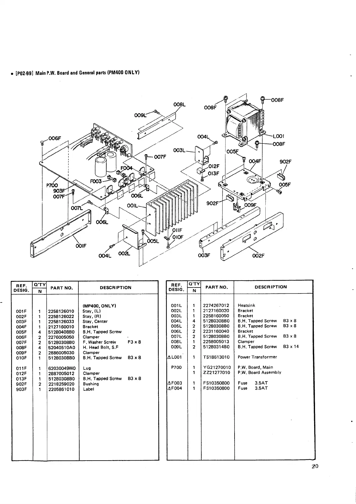 Marantz PM410 - Main P.W. Board and General Parts (PM400); [P02-99] Main P.W. Board and General parts (PM400 ONLY)