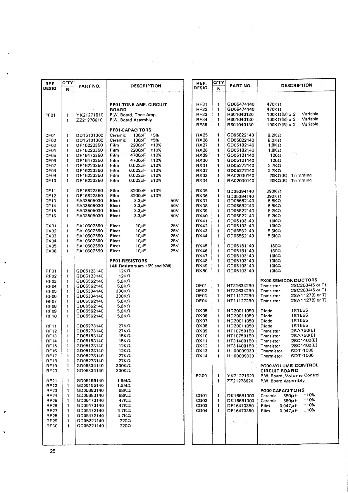Marantz PM410 - Tone and LED Board Components; PF01-CAPACITORS; PF01-RESISTORS; PX00-SEMICONDUCTORS