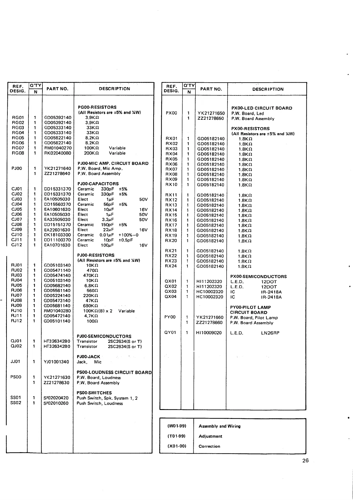 Marantz PM410 - Volume, Mic Amp, LED, Pilot Lamp, and Loudness Components; PG00-RESISTORS; PJ00-MIC AMP. CIRCUIT BOARD; PJ00-CAPACITORS