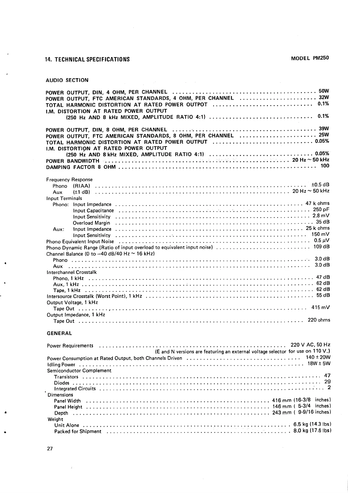 Marantz PM410 - Technical Specifications; Audio Section; General