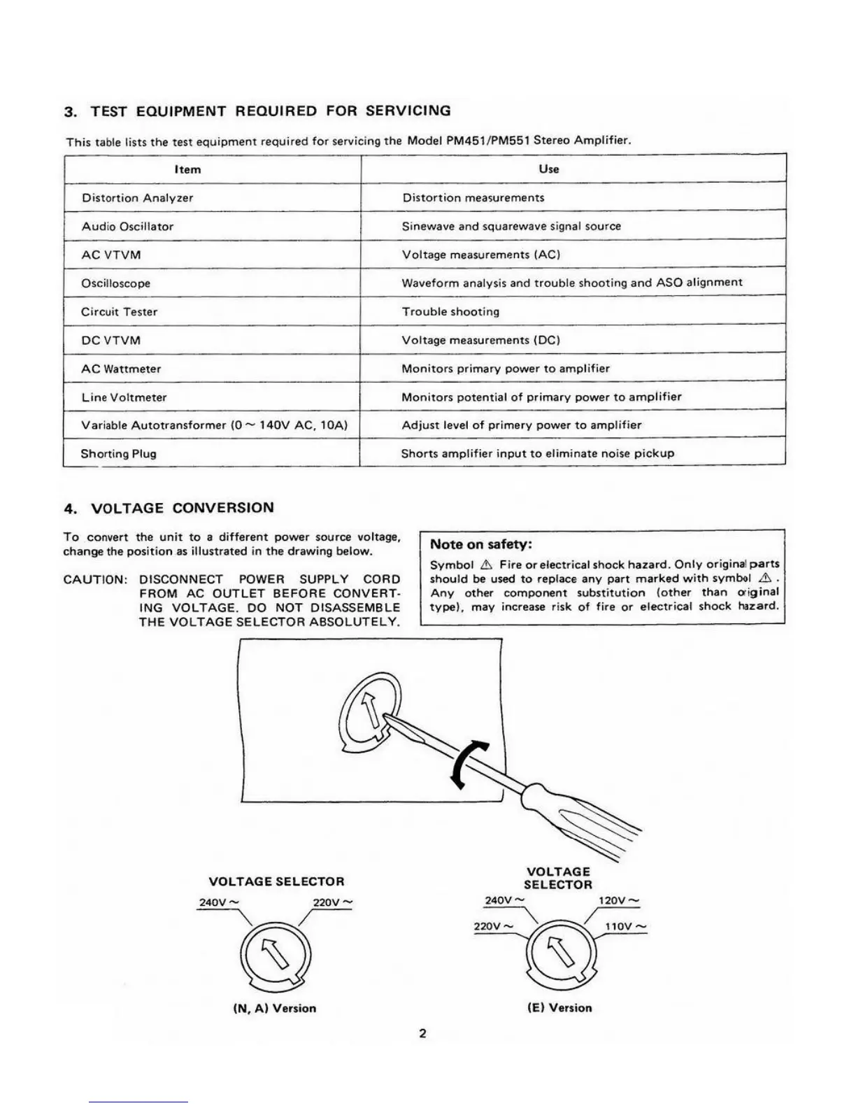 Marantz PM451 - Test Equipment Required for Servicing; Voltage Conversion