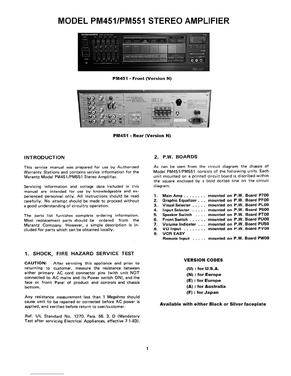 Marantz PM551 - Introduction; P.W. Boards; Front