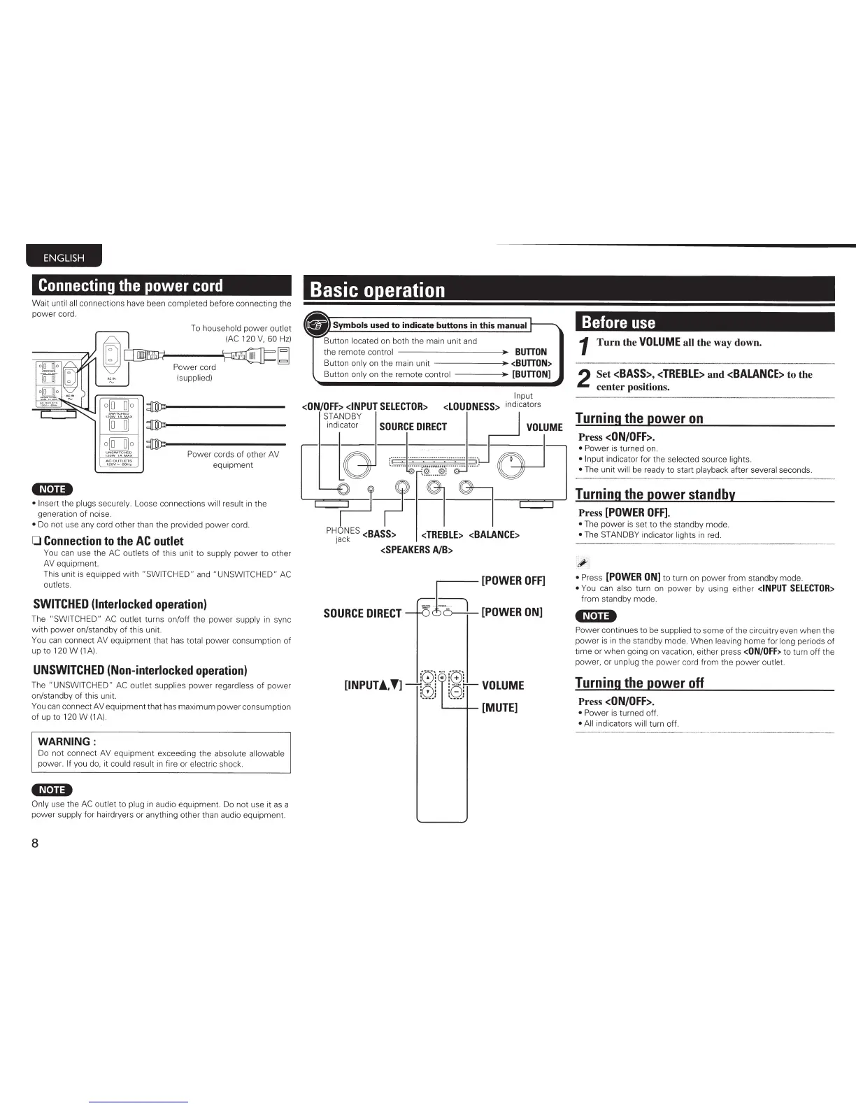 on/standby of this unit.