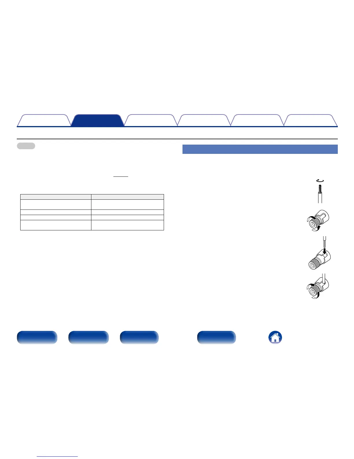 • Connect so that the speaker cable core wires do not protrude from the speaker