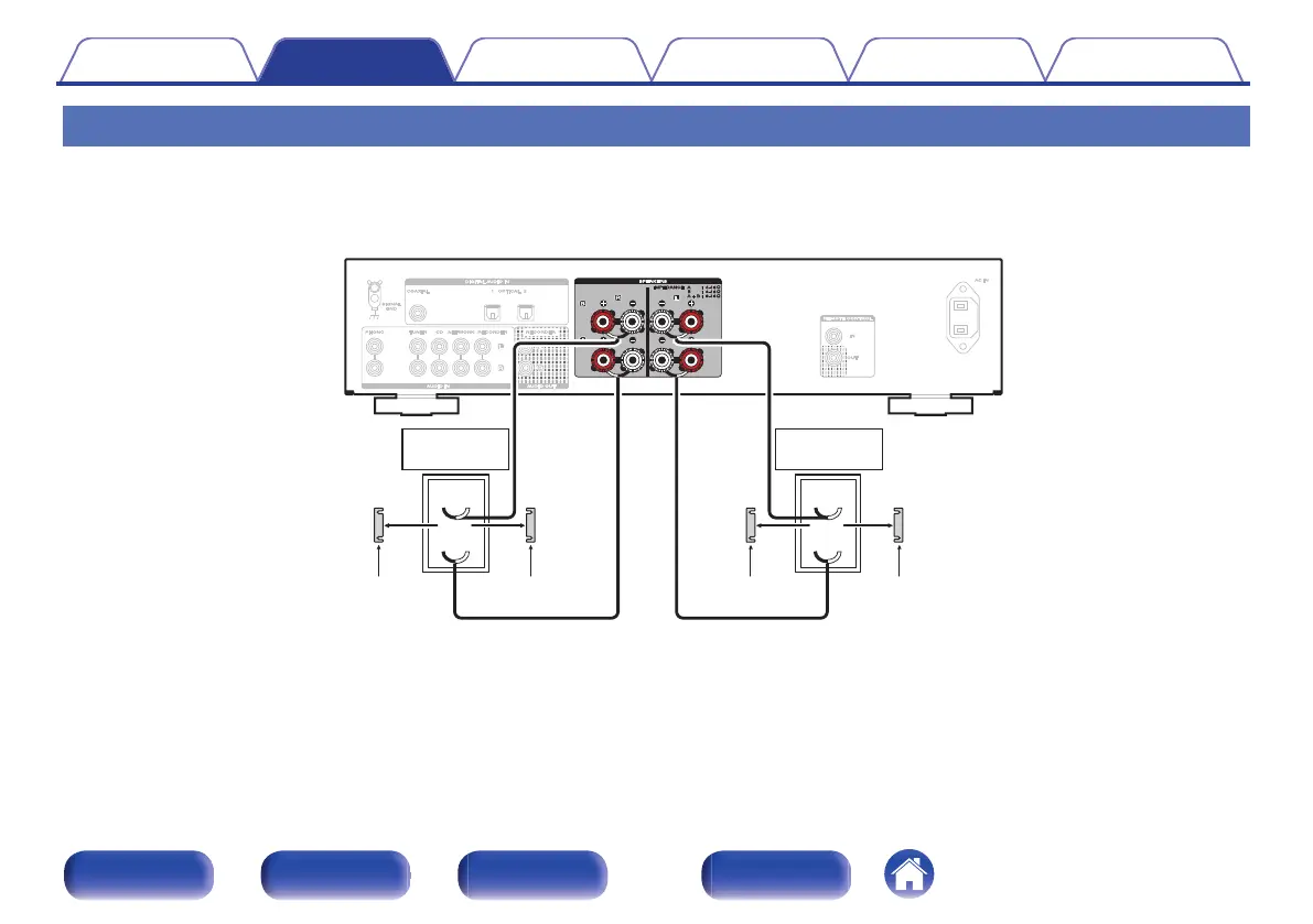 When bi-wiring with bi-wireable speakers, connect the mid and high range terminals to SPEAKERS A (or SPEAKERS B), the low range terminals to
