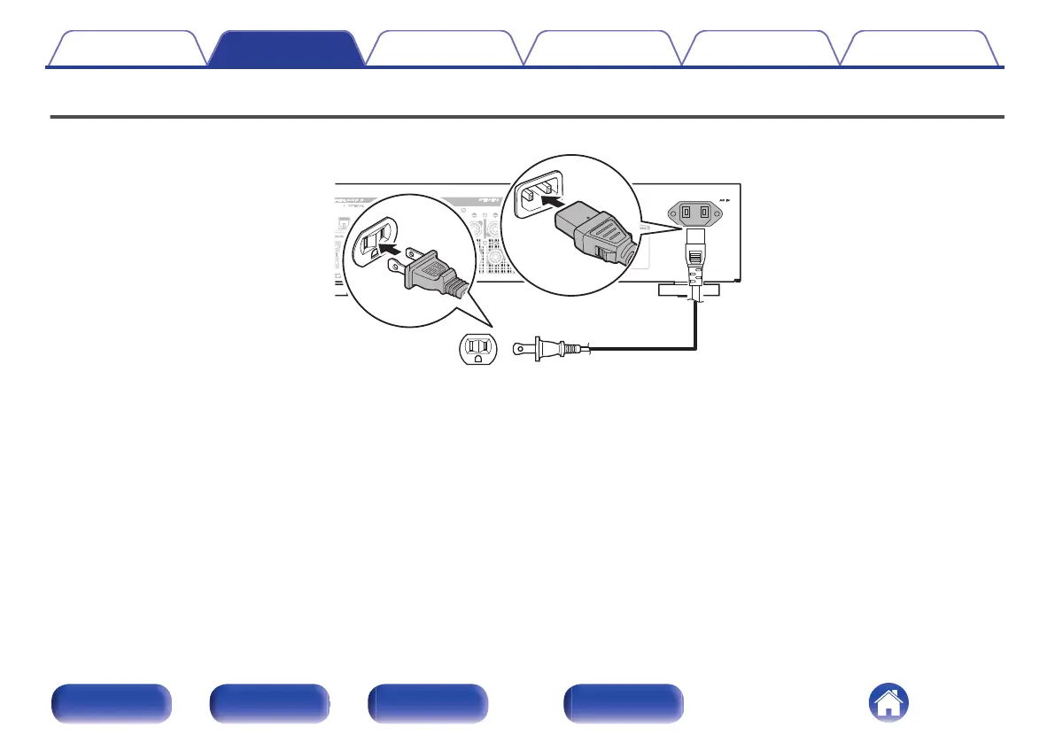 After completing all the connections, insert the power plug into the power outlet.
