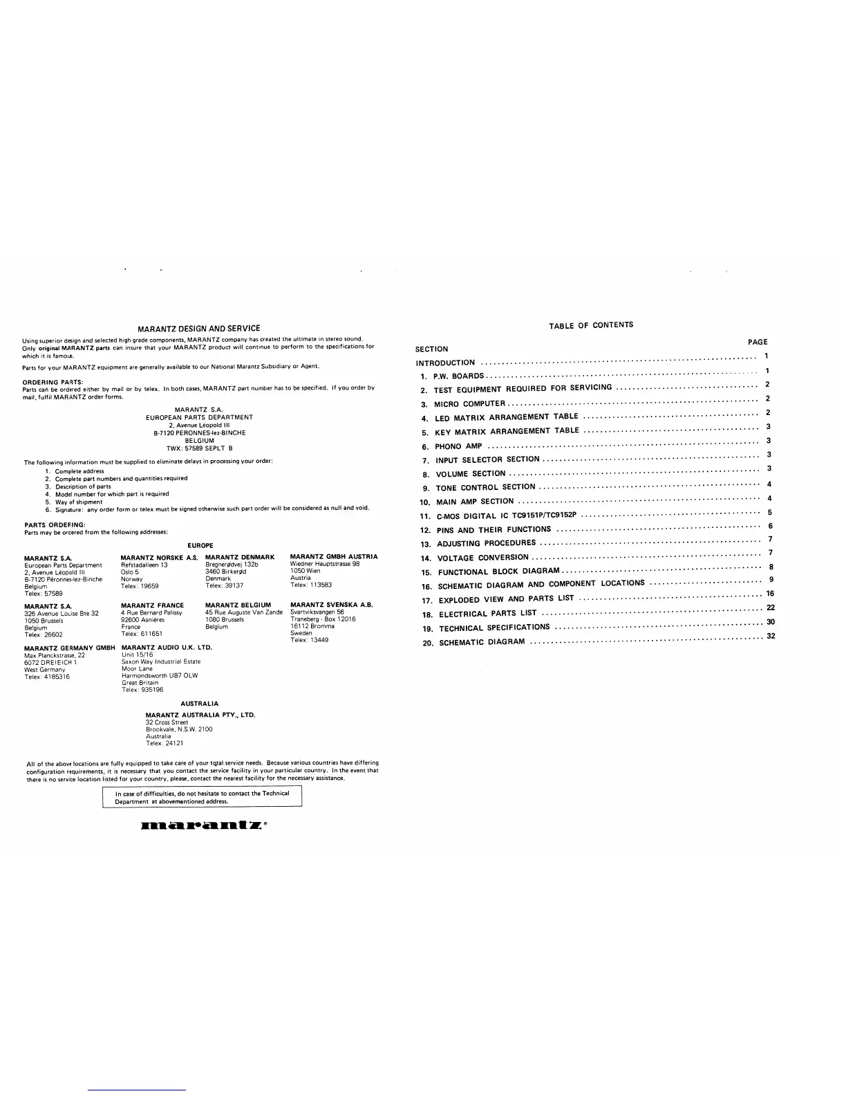 Marantz PM630 - Service Information; Marantz Design and Service; Ordering Parts
