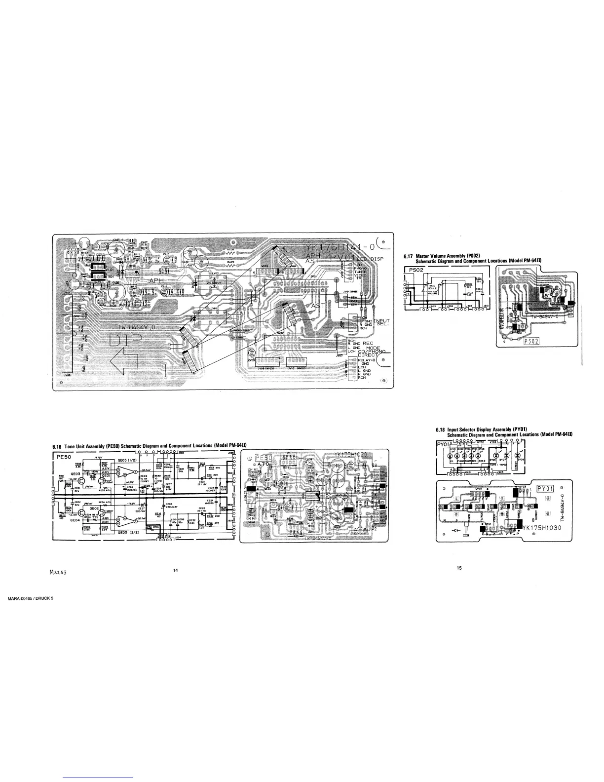Marantz PM64II - Tone Unit Assembly (PE50) Schematic Diagram and Component Locations (Model PM-64 II); Master Volume Assembly (PS02) Schematic Diagram and Component Locations (Model PM-64 II); Input Selector Display Assembly (PY01) Schematic Diagram and Component Locations (Model PM-64 II)