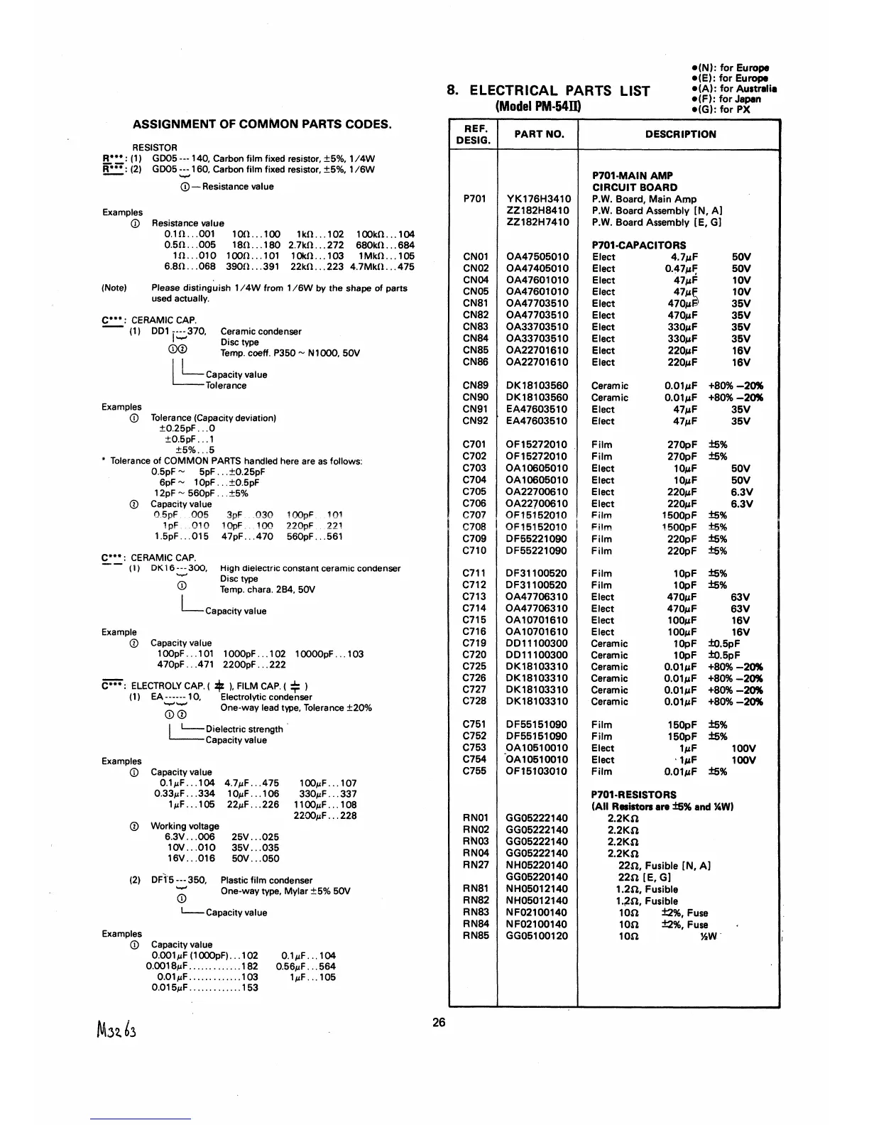 Marantz PM64II - Electrical Parts List (Model PM-54 II); P701-Main Amp Circuit Board