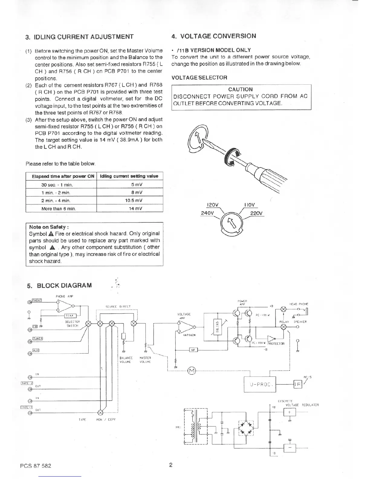 Marantz PM66KI - Idling Current Adjustment Procedure; Safety Precautions for Idling Current; Voltage Conversion Guide; Voltage Conversion Safety Warning